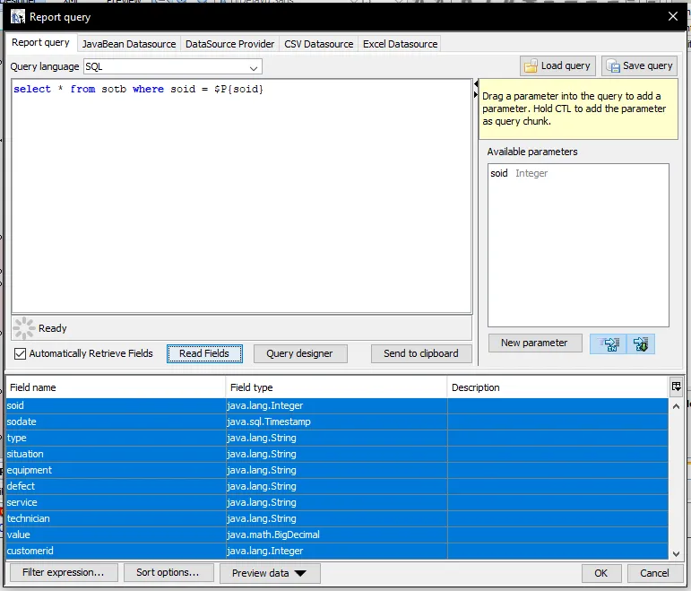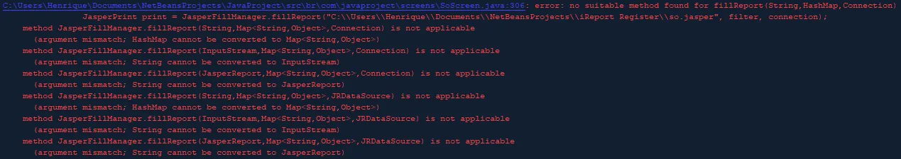 Método JasperPrint em NetBeans não aceita parâmetro de filtro