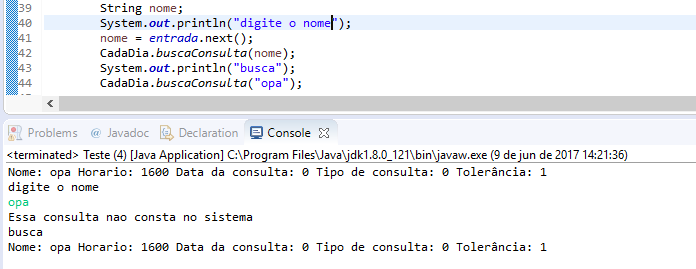 porém quando é pedido do teclado colocando o mesmo parametro o metodo retorna que nao existe dentro da lista, nao sei o que fazer nem pq esta dando isso
