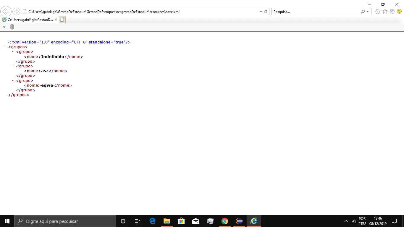 Quando vou salvar no XML ele sempre salva assim, não importa o quanto eu mude os atributos, quantas mudanças eu faça, ele sempre salva só o nome do Grupo no XML: