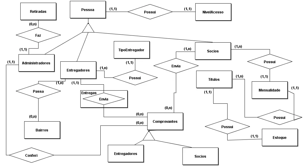 A Entidade associativa entregas, criei pensado nos entregadores da cidade e nos pontos de entrega, pois assim durante o mês eles lançam pagamento de sócios e ao final quando eles forem fazer seu deposito, o sistema consulta nesta tabela para saber qual o valor deve ser depositado.