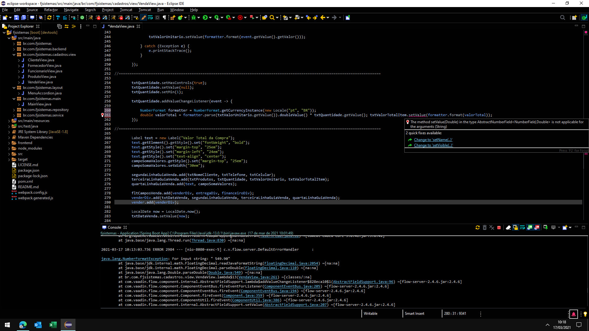 double valorTotal = formatter.parse(txtValorUnitario.getValue()).doubleValue() * txtQuantidade.getValue(); txtValorTotalItem.setValue(formatter.format(valorTotal));