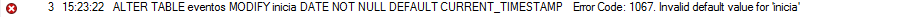 Alguma mensagem de erro ao definir o CURRENT_TIMESTAMP?