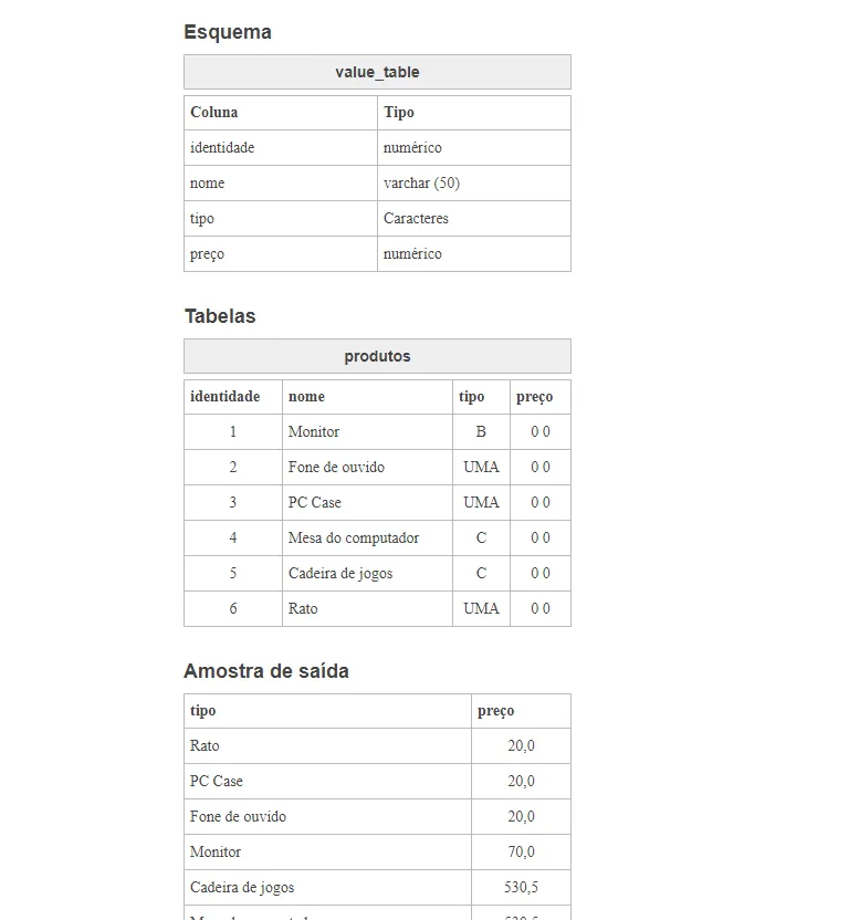 Seu amigo Zé Maria está em uma emboscada porque ele fez uma atualização sem um onde e acaba zerando todos os valores da coluna de preços. Para sua sorte, o preço pode ser recalculado sabendo o tipo de produto.