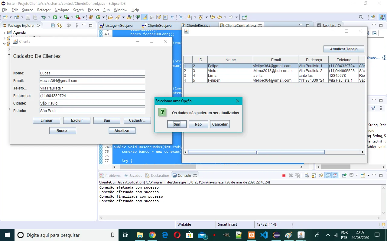JOptionPane.showConfirmDialog(null,"Os dados não puderam ser atualizados");
