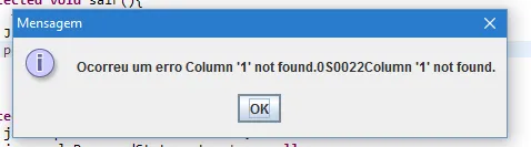 JOptionPane.showMessageDialog(null, "Ocorreu um erro "+ e.getMessage()+ e.getErrorCode()+ e.getSQLState()+e.getLocalizedMessage());