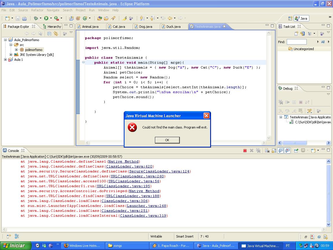 A pasta workspace tá no meu pendrive, pelo qual executei o arquivo na faculdade e aqui em casa não consigo por uma série de erros