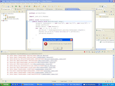 Não dá pra ver direito, mas oque está escrito na caixa de erro é o seguinte: Could not find the main class.Program will exit.