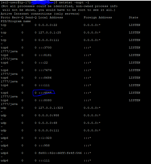 tcp6 0 0 :::4848 :::* LISTEN 1777/java