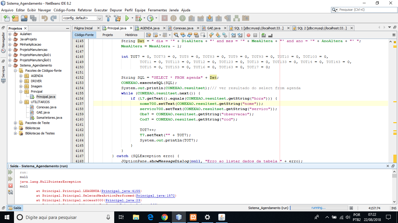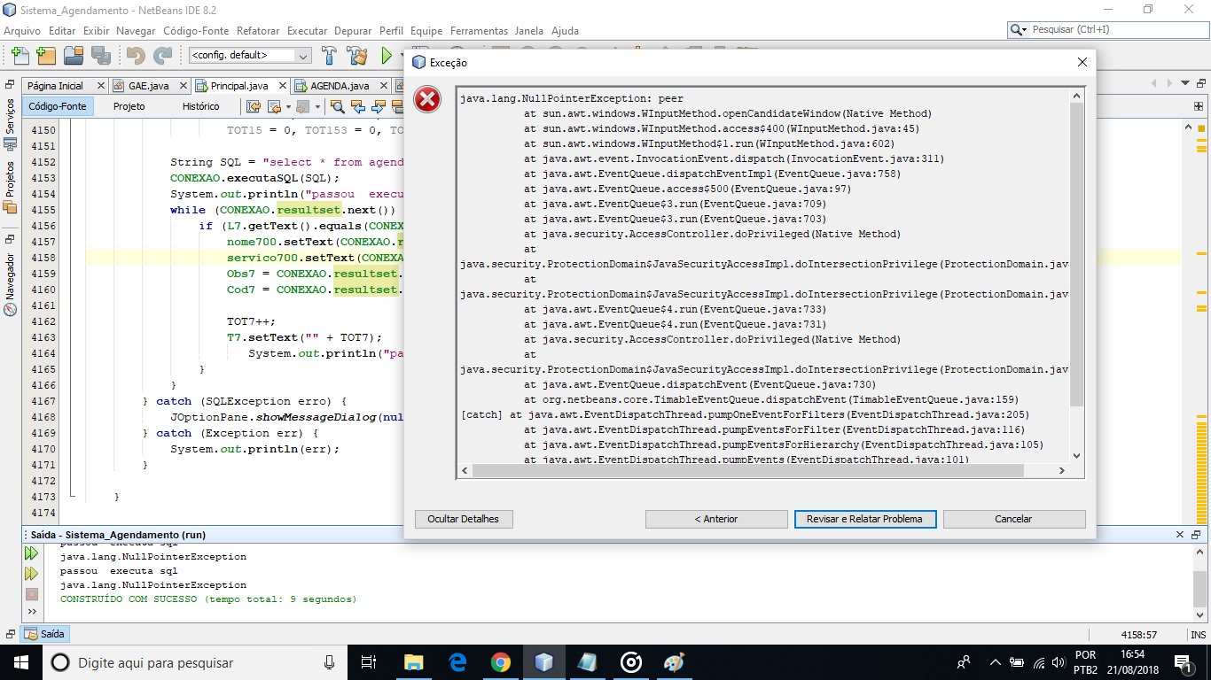 bom dia esse é o erro que esta retornando // java.lang.NullPointerException