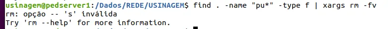 Não consigo rodar a combinação de comandos find, xargs e rm