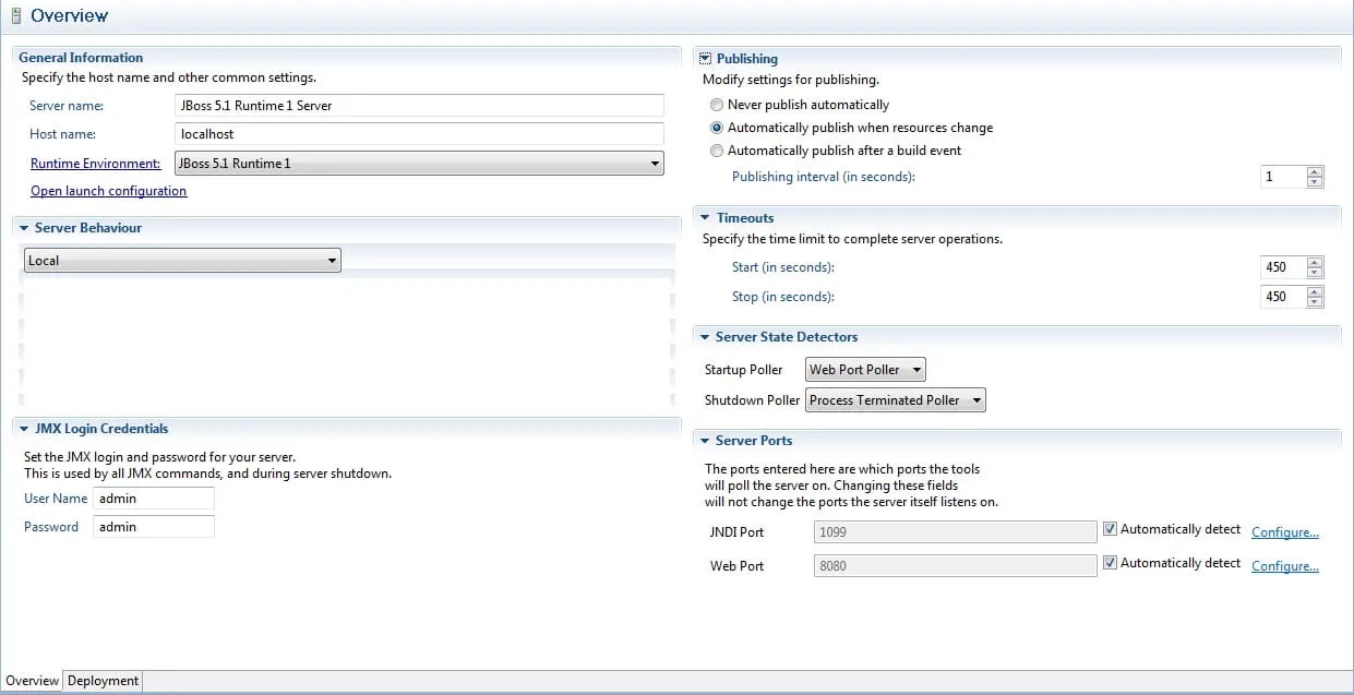 Pode ser que eu esteja configurando o Server errado pois eu nunca trabalhei com JBoss antes…