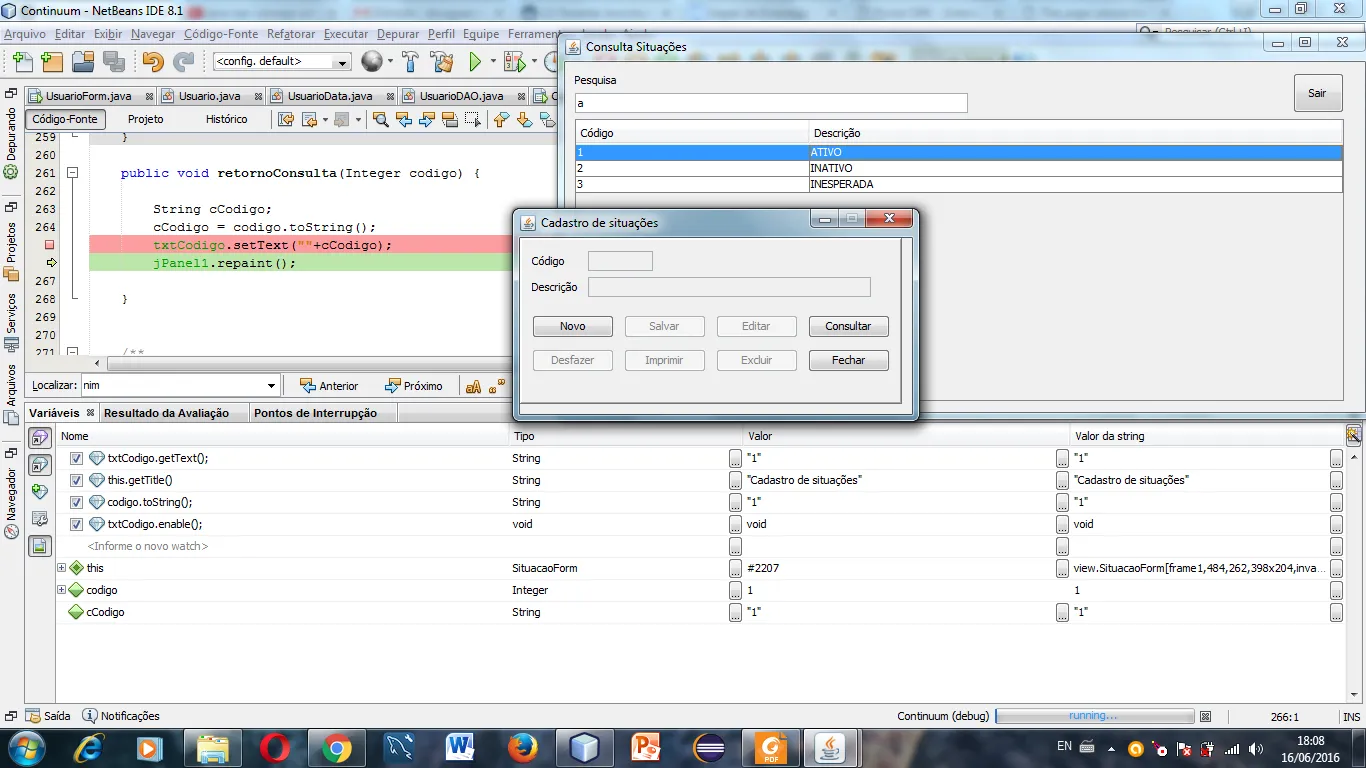 — > mostrar o codigo da tabela Consulta Situações no TextField da tela Cadastro situações