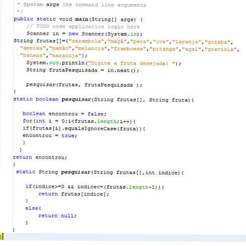 -pesquisar() – recebe como parâmetro o vetor de frutas e uma