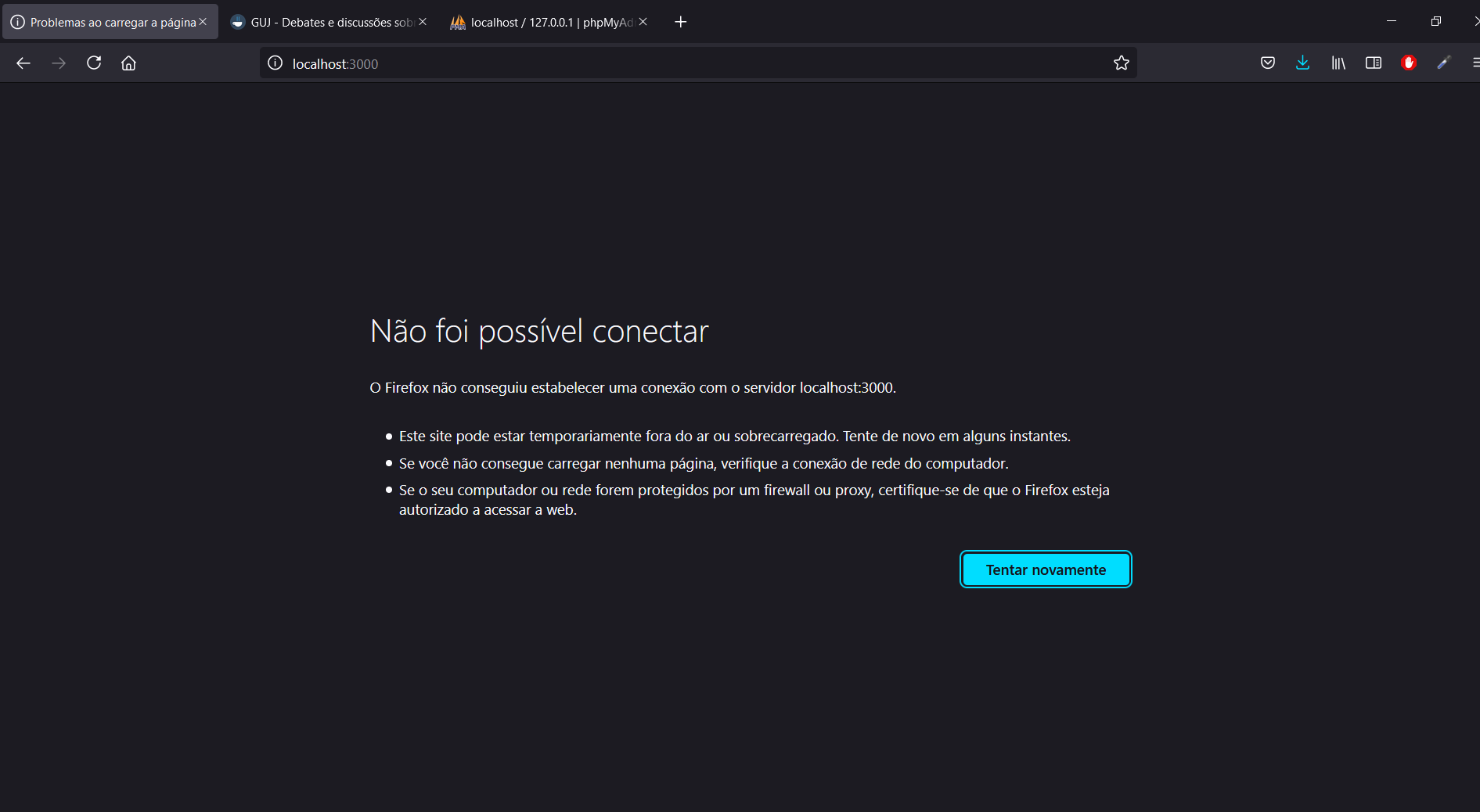 Olá, estou fazendo uma aplicação em nodejs para um trabalho da faculdade mas estou me deparando com um “erro” muito estranho. Eu simplesmente não consigo acessar meu http://localhost:3000/, e o pior é que não aparece nada de errado no terminal. Segue o código: