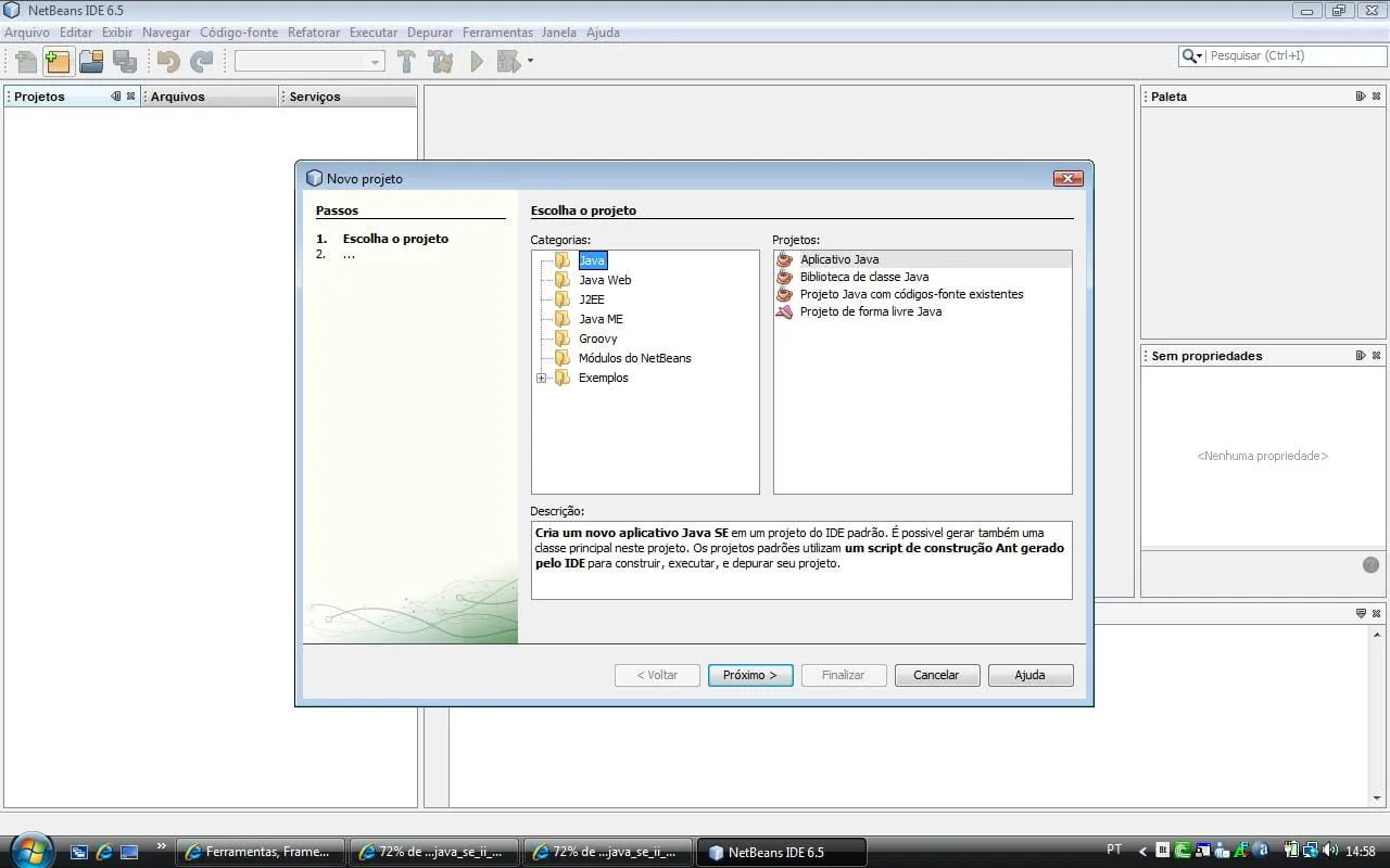 na criacao de projetos, escolho a categoria java e nao aparece aquele tipo de projeto para area de trabalho. so aparece " aplicativo java, biblioteca de classe java, projeto java com codigo fonte, projeto de forma livre java. essas sao as unicas opcoes…