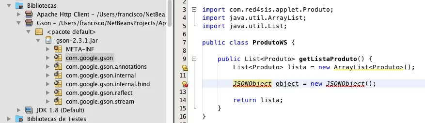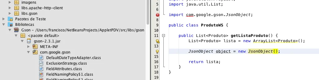 Como exemplo de não encontrar a classe estou usando aqui apenas o Gson: