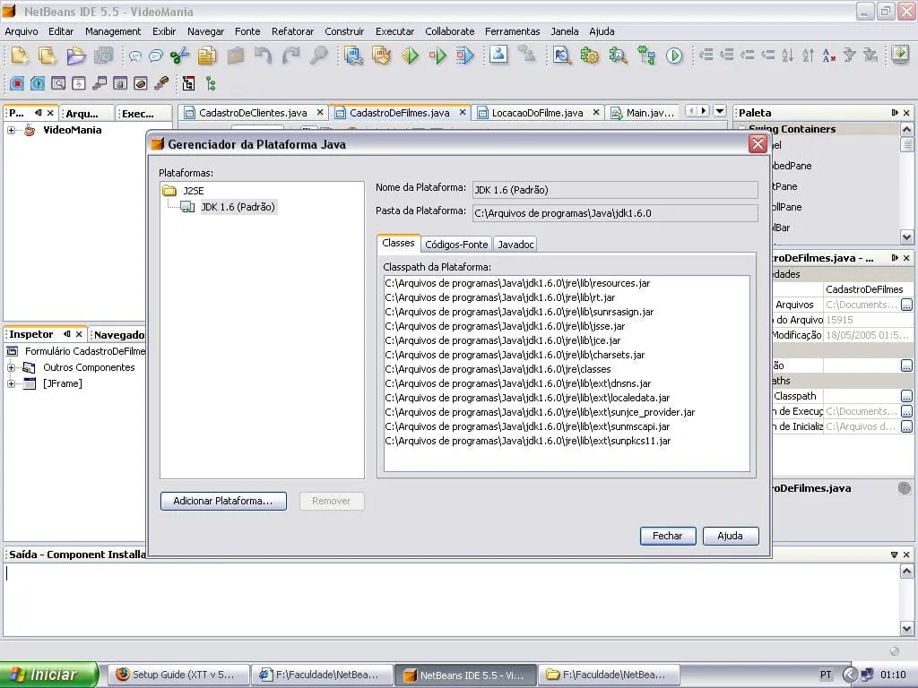 tenho o jdk1.6.0 instalado na maquina e todos as outras ferramentas, blueJ, Gel, Jcreator funcionam…