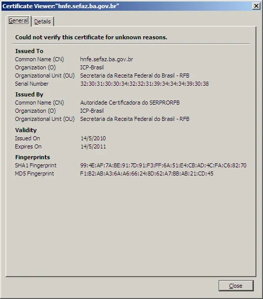 Porém, não estou conseguindo usar ele para o estado da BA, onde meu cliente tem um certificado da CAIXA, emitido por “AC CAIXA PJ”, quando tento conectar apresenta a seguinte mensagem…