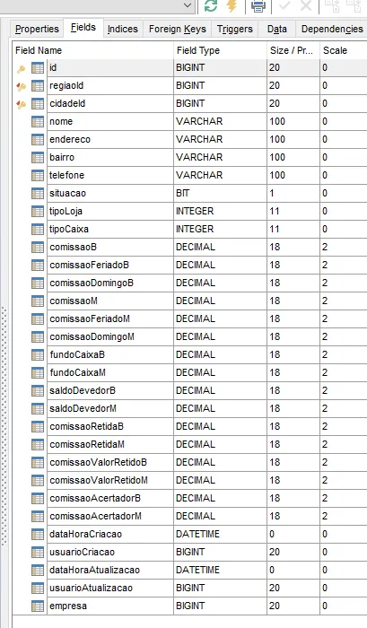 Eu tenho uma tabela no banco com o nome de Lojas :