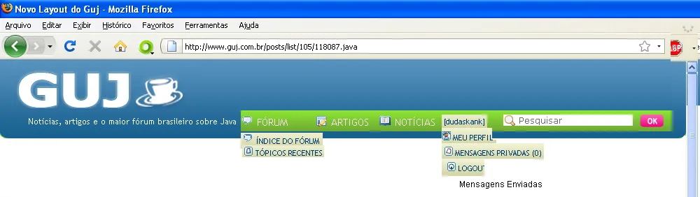 Brincadeiras a parte, ficou muito legal o novo GUJ… Como qualquer outra coisa no mundo, ele está evoluindo sempre! O verde e o rosa (principalmente o rosa) é que não se encaixaram muito bem no novo layout.