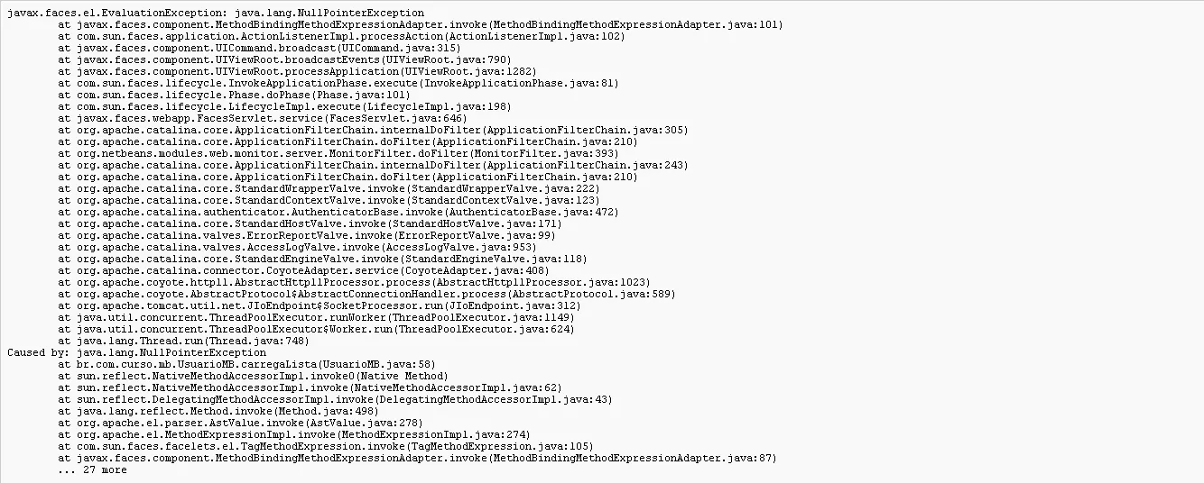 Quando eu chamo o método carregarLista() na minha página, mostra o seguinte erro: