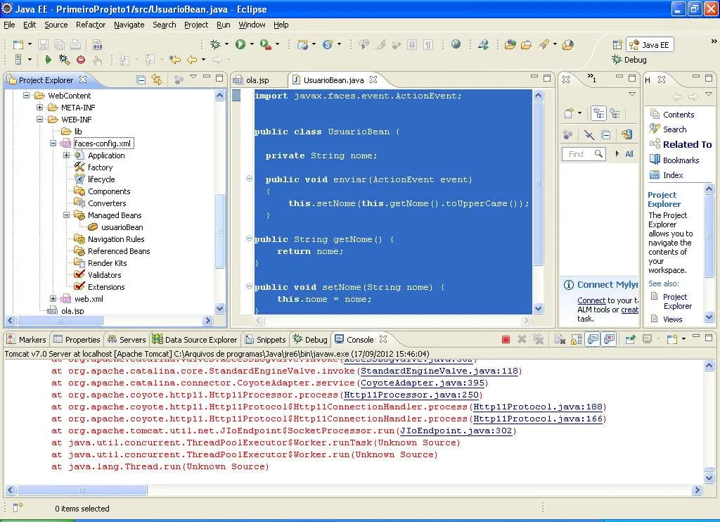 GRAVE: Servlet.service() for servlet [Faces Servlet] in context with path [/PrimeiroProjeto1] threw exception [Não foi possível criar o bean gerenciado usuarioBean. Os seguintes problemas foram encontrados: