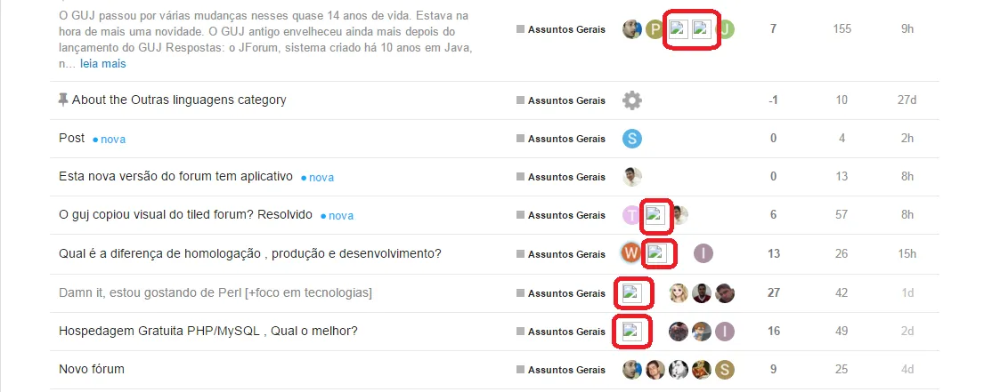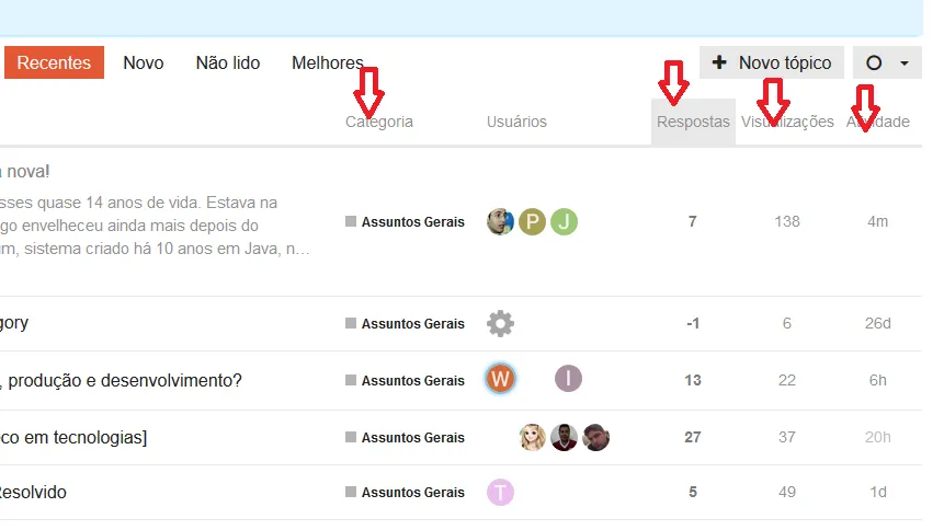 A classificação dos topicos (ver setas vermelhas no print) tbm não esta funcionando aqui (uso firefox).