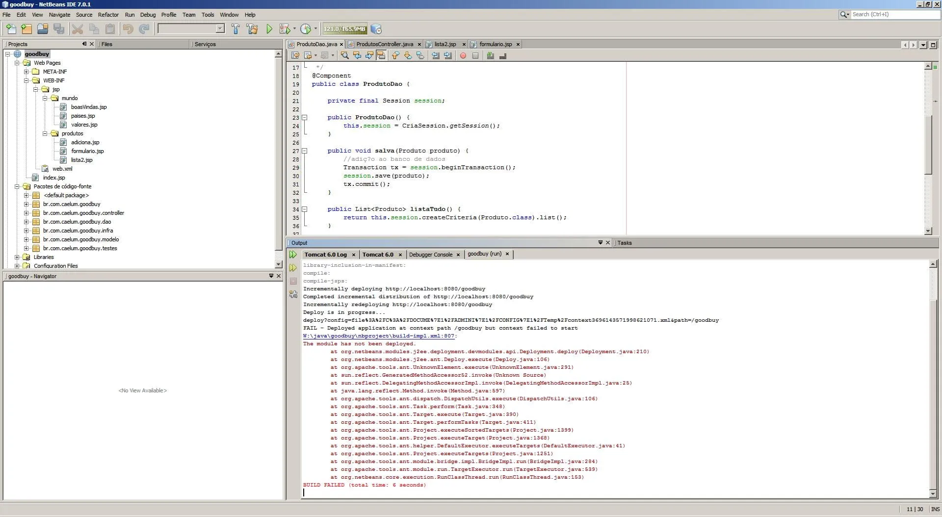 Segue log do TomCat: