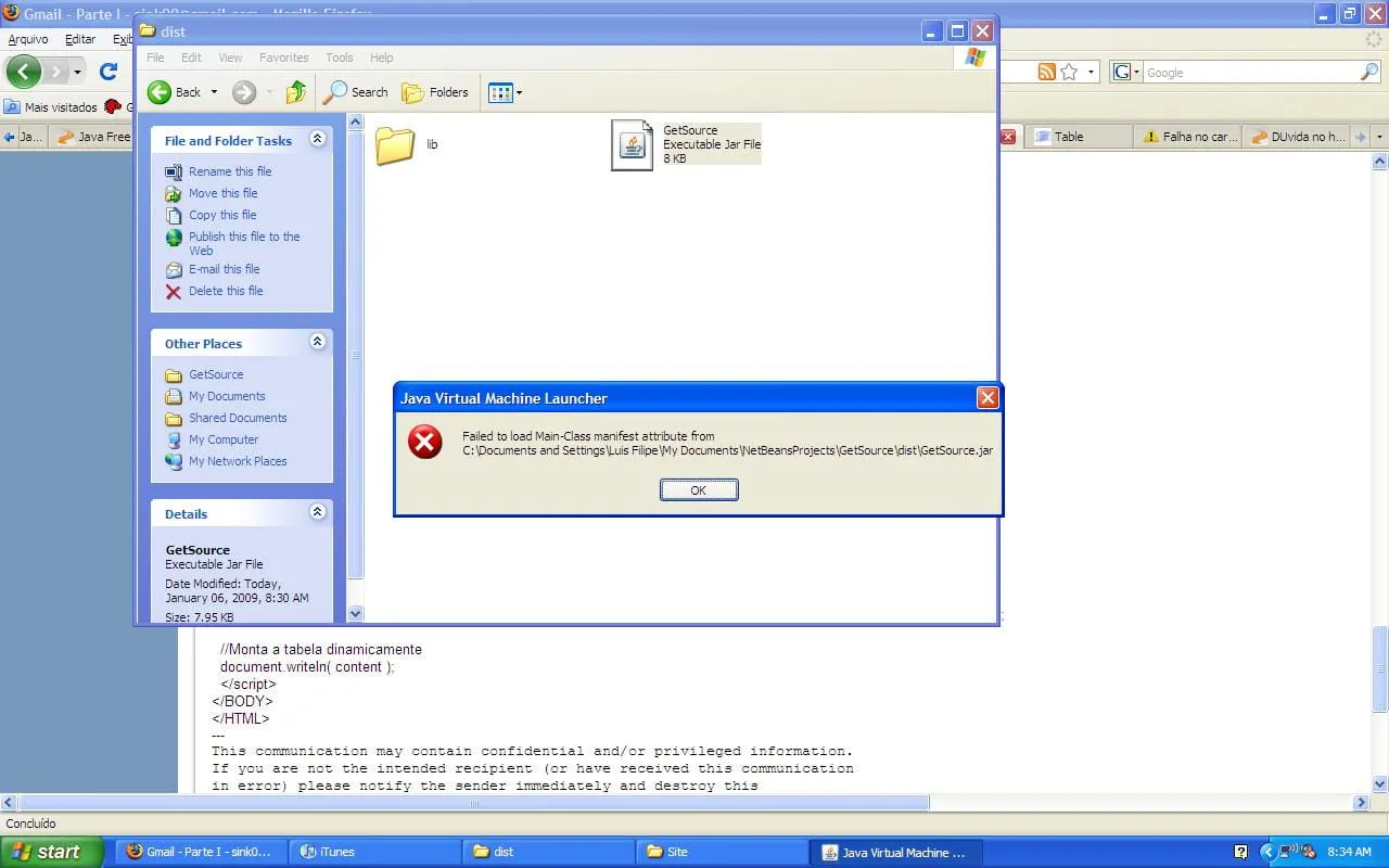 QUando eu dei build no Netbeans no meu projeto e fui rodar ele direto do Jar deu o erro que esta em anexo. Alguem sabe o que eh?