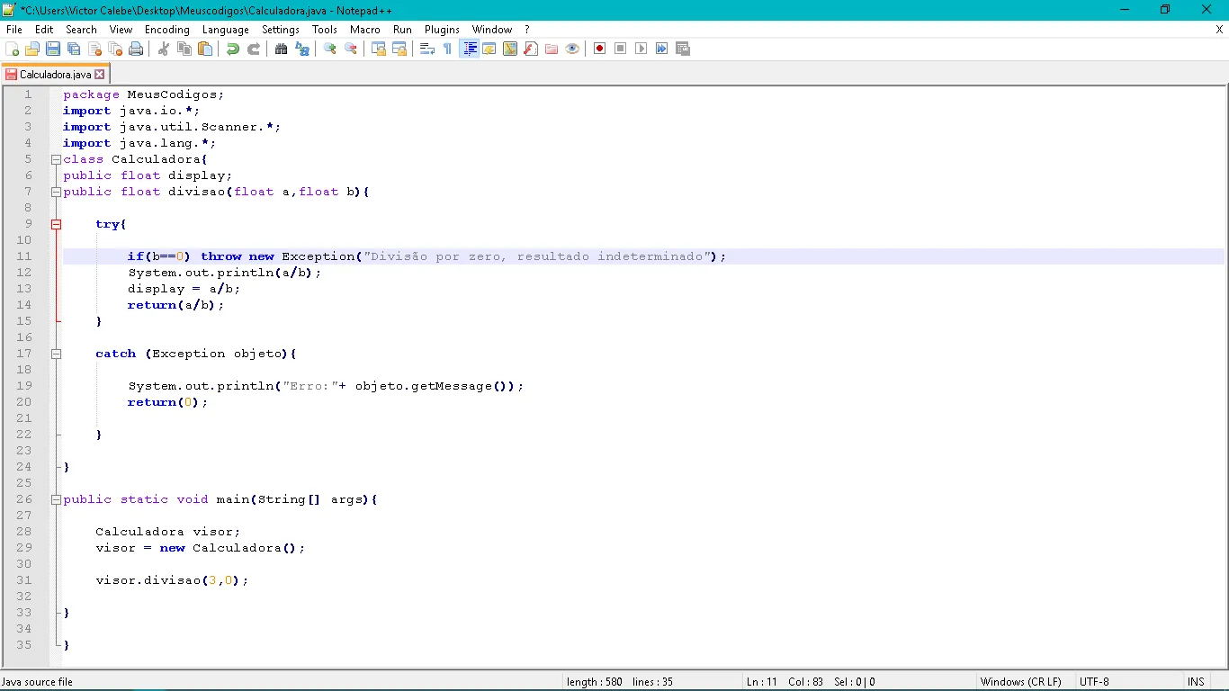 throw new ArithmeticException("Não é possível dividir por zero!");