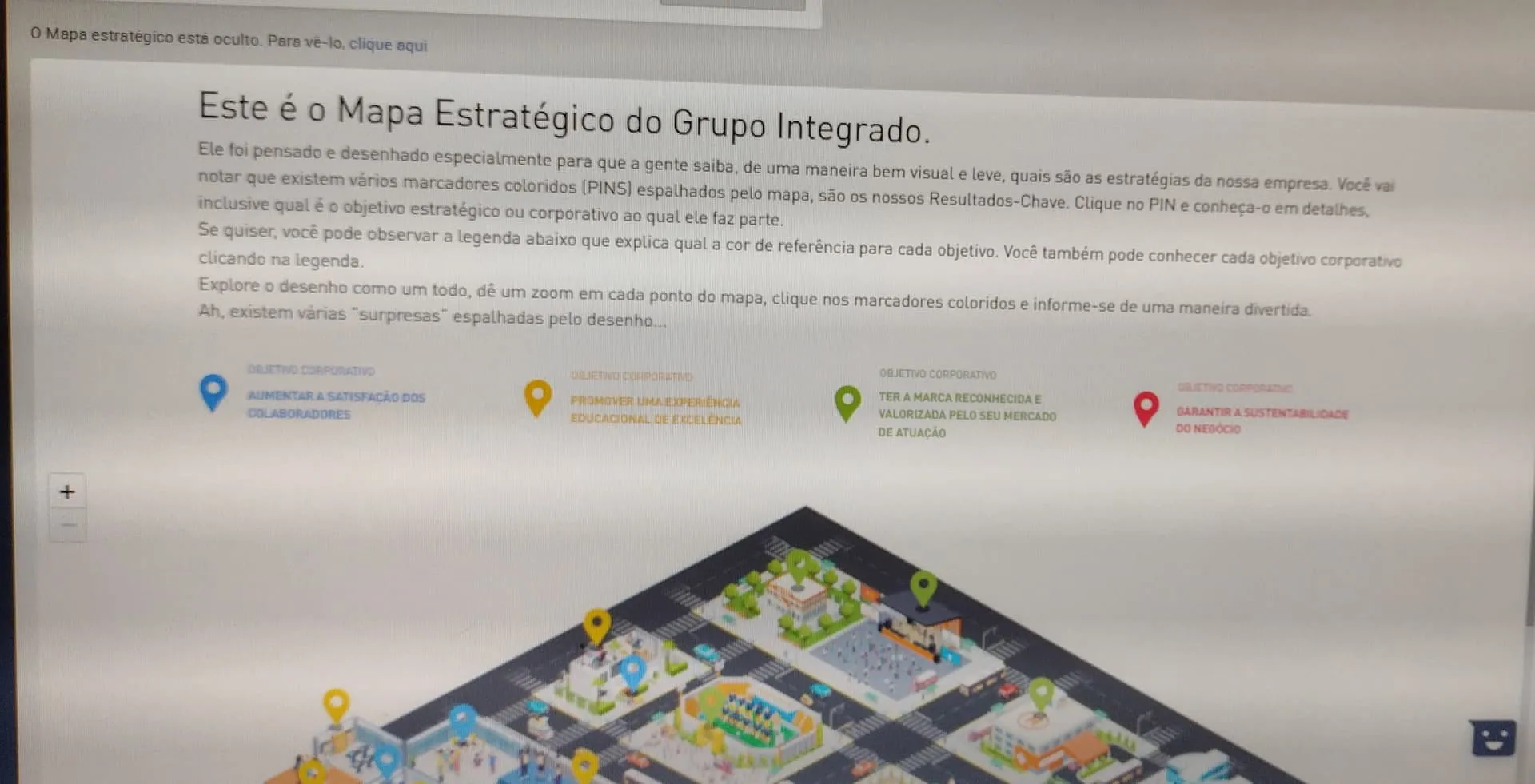 “Ao visualizar o mapa dos objetivos estratégicos, salvar no localStorage que o mapa foi visualizado. Caso tenha sido visualizado, ocultar o mapa na próxima visualização e mostrar um link para exibi-lo.”