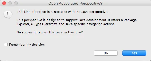 Ao criar um projeto no eclipse em linguagem java, a tela abaixo é exibida, o que ela significa com relação a perspectiva associada?