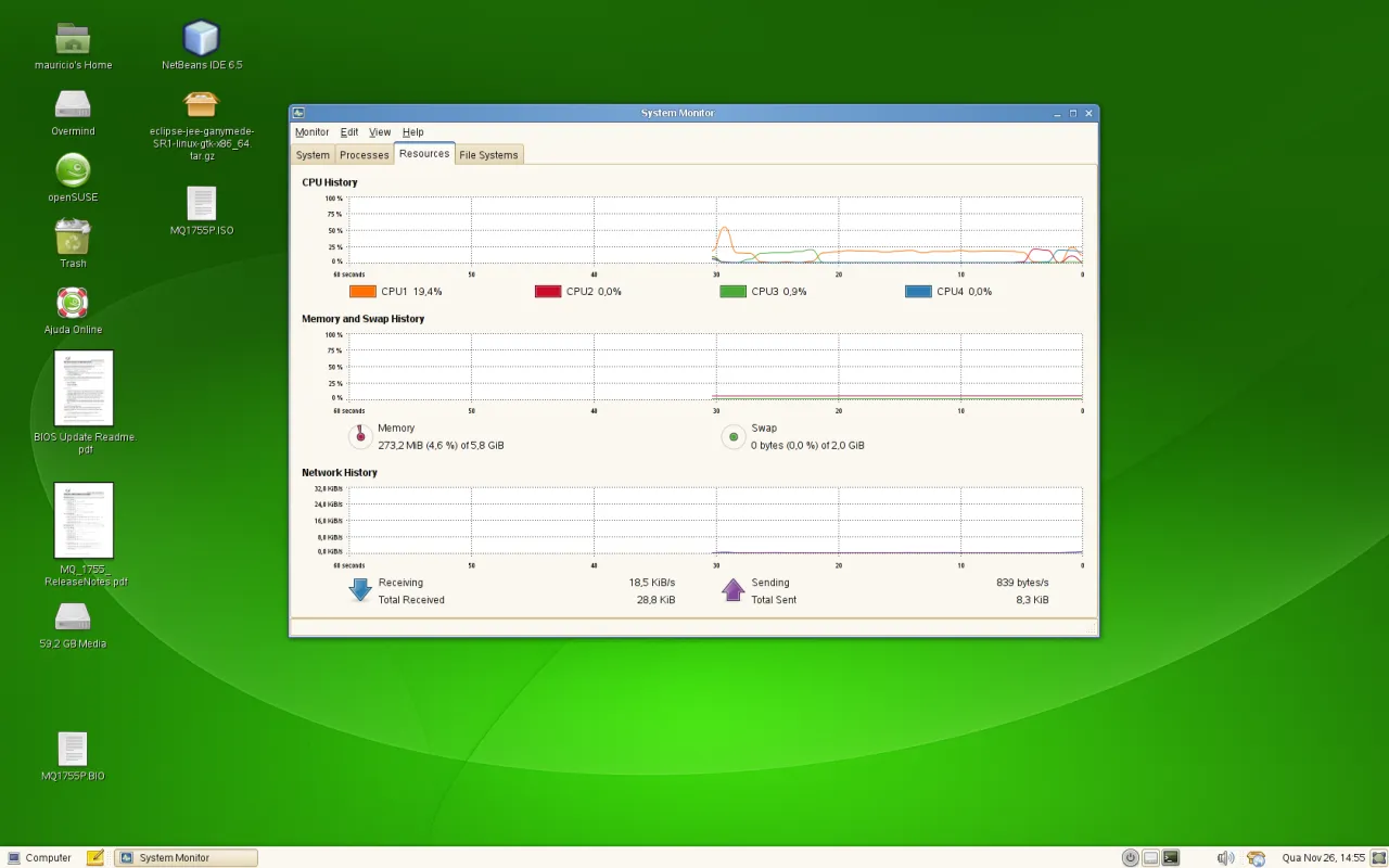 No fim ele mostra que dos 4 slots, dois estão sendo usados, cada um com um pente de 2gb. :(