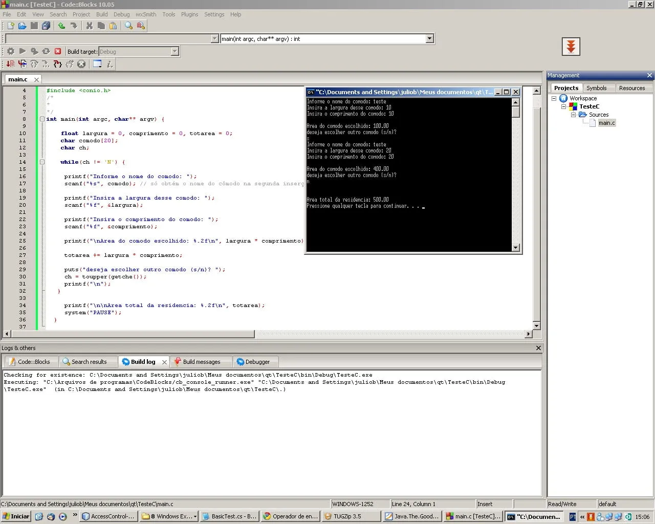 printf("\n\nArea total da residencia: %.2f\n", totarea);