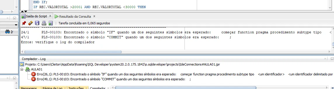 Porém o oracle informada que tem algo errado…