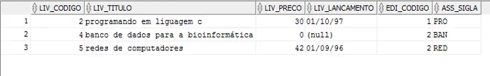 Pessoal boa tarde me ajudem em uma questão Exibir a quantidade de livros publicados por sigla, exibindo a