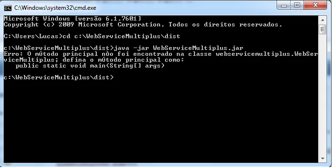 Erro: O método principal não foi encontrado na classe websericemultiplus.WebserviceMultiplus; defina o método principal como: