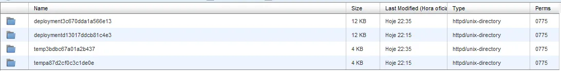 Essas pastas têm nomes nesse padrão: deploymentcabe3856ea377d83 ou tempcc4e2c8a5a5134b5