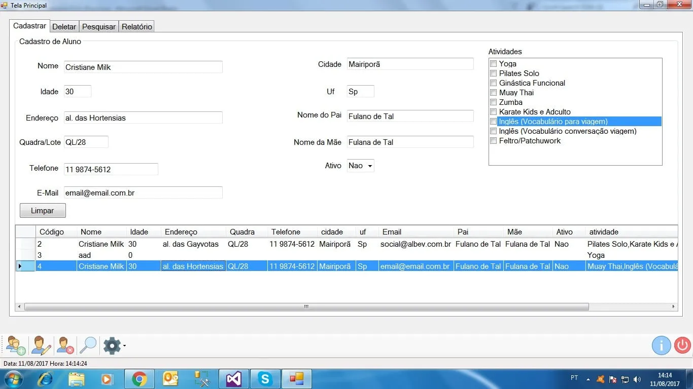 (DADOS DO DATAGRID) essa imagem é do meu crud, onde seleciono o item cadasdastrado do meu datagridview, ao lado esta meu checkedlistbox,