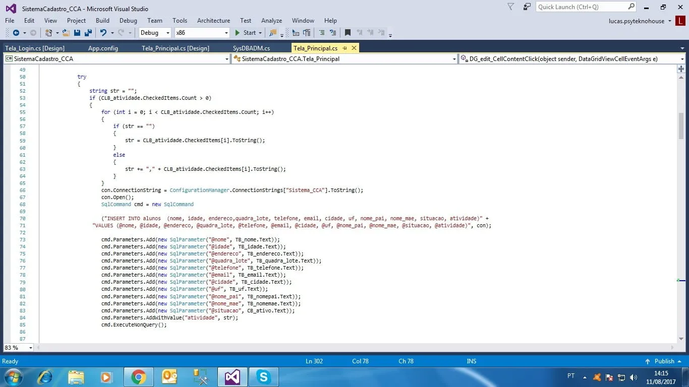 (INSERT)essa imagem é da minha funcao de cadastramento onde pego o os itens selecionados no meu checkedlistbox junto aos textbox.