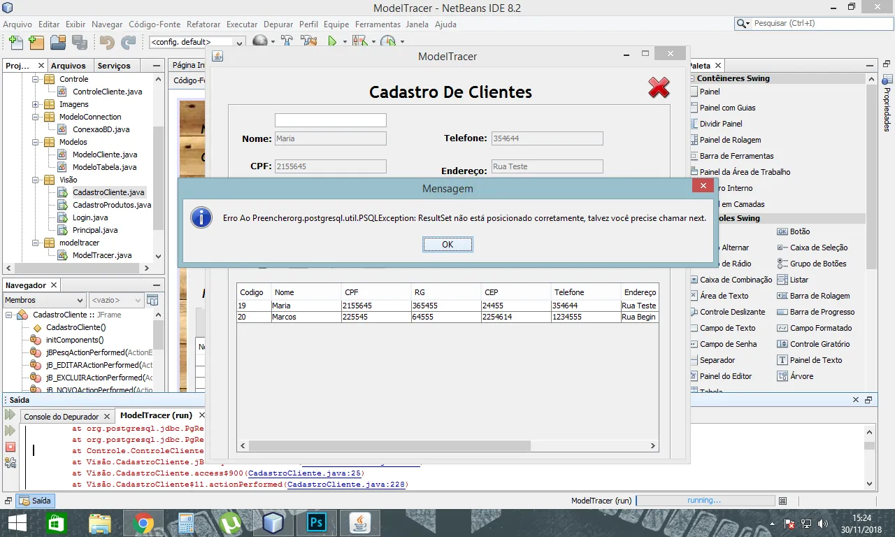 mod.setRg(conex.rs.getInt(“rg_cliente”));