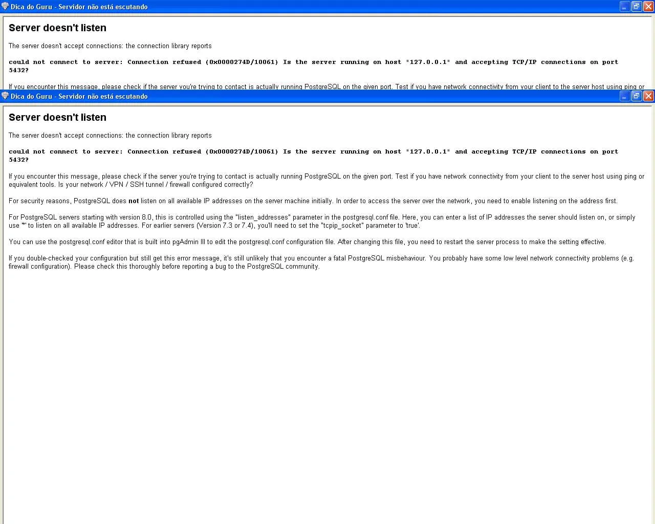 Você checou se o postgres está iniciado e executando na porta 5432?