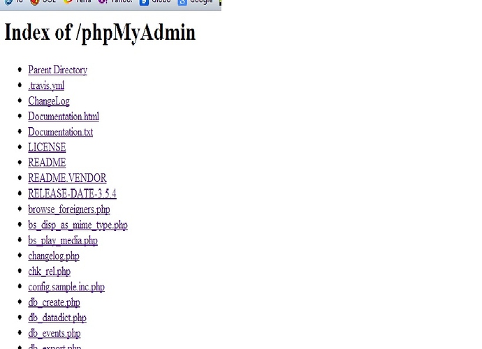 espero que alguem possa me ajudar: fiz a instalacao do apache, php e mysql no meu windows, mas quando abro localhost/phpmyadmin, ele abre um diretorio “Index of /phpMyAdmin”.