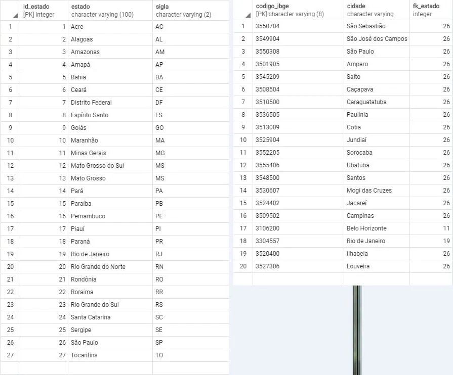 Tenho duas tabelas SQL, conforme abaixo: TBL_CIDADE e TBL_ESTADO. na tbl_cidade há uma chave estrangeira chamando a coluna id_estado. Assim quando o usuários insere uma cidade ele precisa passar o id do estado obrigatoriamente.