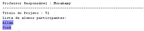System.out.println("Lista de alunos participantes: ");