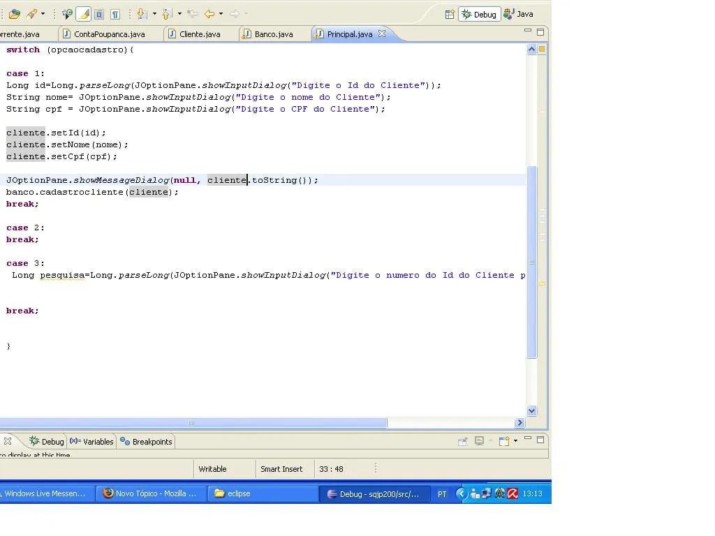 String cpf = JOptionPane.showInputDialog("Digite o CPF do Cliente");
