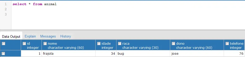 importjava.sql.Connection;importjava.sql.DriverManager;importjava.sql.PreparedStatement;importjava.sql.ResultSet;importjava.sql.SQLException;importjava.util.logging.Level;importjava.util.logging.Logger;importjavax.swing.JOptionPane;publicclassEstatistica{publicstaticvoidmain(Stringargs[]){Stringurl="jdbc:postgresql://localhost:5432/basedados";Stringusuario="xxxx";Stringsenha="xxxx";try{Class.forName("org.postgresql.Driver");Connectioncon=DriverManager.getConnection(url,usuario,senha);//ajuste o que estiver acima para se conectar com o banco de dados que você usaPreparedStatementstmt;ResultSetrst=null;Animala=newAnimal();a.setNome(JOptionPane.showInputDialog("NOME DO ANIMAL: "));StringcloneIdade=JOptionPane.showInputDialog("IDADE DO ANIMAL: ");IntegerclonedIdade=Integer.parseInt(cloneIdade);a.setIdade(clonedIdade);a.setRaca(JOptionPane.showInputDialog("DIGITE A RAÇA: "));a.setDono(JOptionPane.showInputDialog("NOME DO DONO: "));StringcloneTelefone=JOptionPane.showInputDialog("TELEFONE:");IntegerclonedTelefone=Integer.parseInt(cloneTelefone);a.setTelefone(clonedTelefone);Stringsql="Insert into animal(nome, idade, raca, dono, telefone) values(?,?,?,?,?)";stmt=con.prepareStatement(sql);stmt.setString(1,a.getNome());stmt.setInt(2,a.getIdade());stmt.setString(3,a.getRaca());stmt.setString(4,a.getDono());stmt.setInt(5,a.getTelefone());stmt.execute();System.out.println("Conexão realizada com sucesso.");}catch(ClassNotFoundException|SQLExceptionex){Logger.getLogger(Estatistica.class.getName()).log(Level.SEVERE,null,ex);JOptionPane.showMessageDialog(null,"ERRO AO POPULAR");}}}