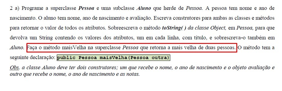 public Pessoa maisVelha(Pessoa outra){
