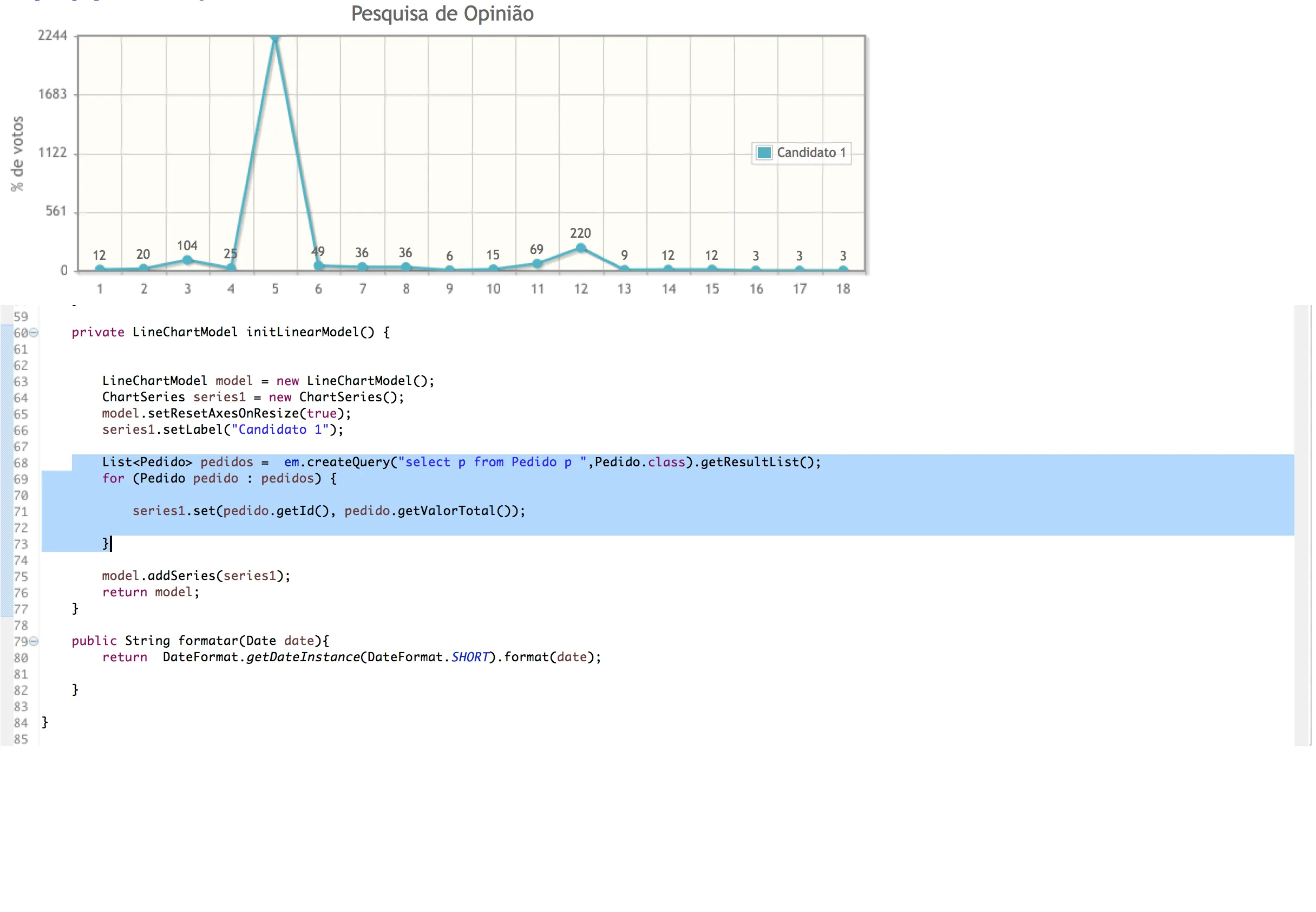 Estou tentando montar um gráfico com primefaces , porém estou com problemas , na hora da renderização ,