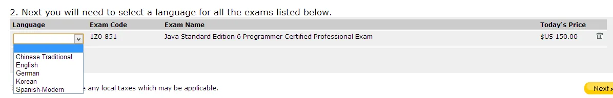 Acho que não estamos falando sobre a mesma prova, a OCJP6 não tem a opção de português.